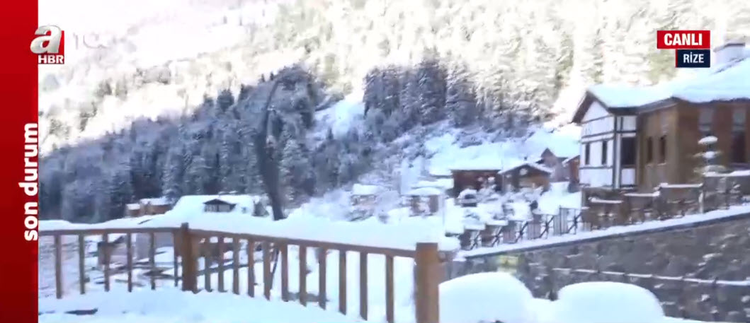 Ayder Yaylası kar yağışıyla beyaz gelinliği giydi.