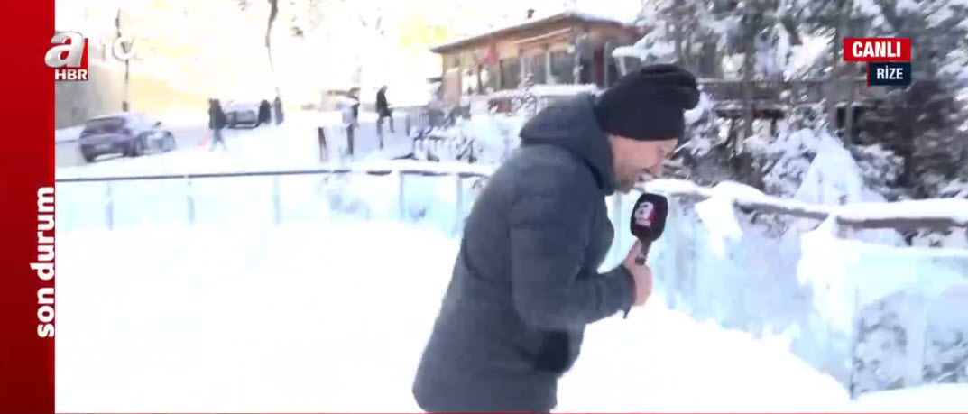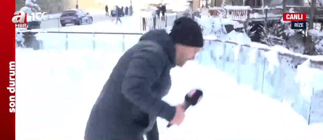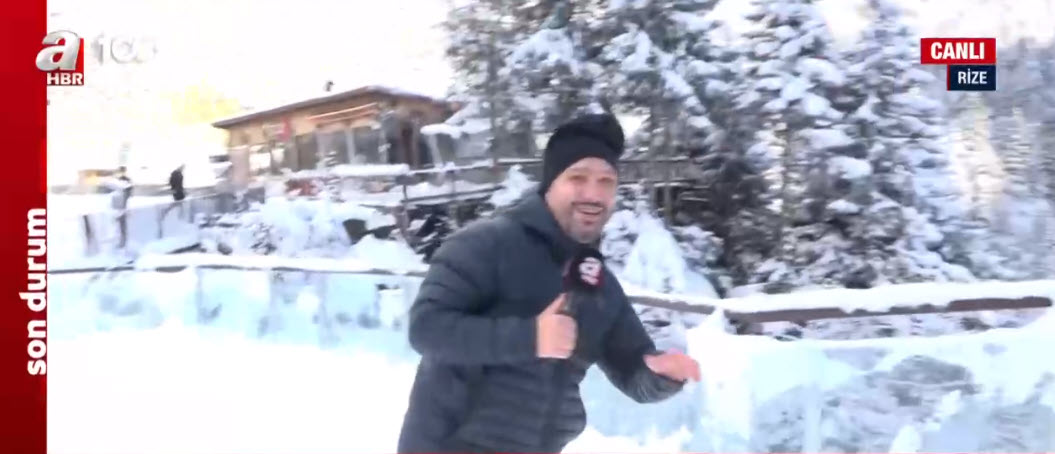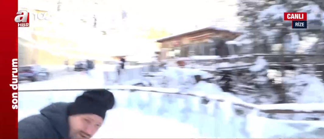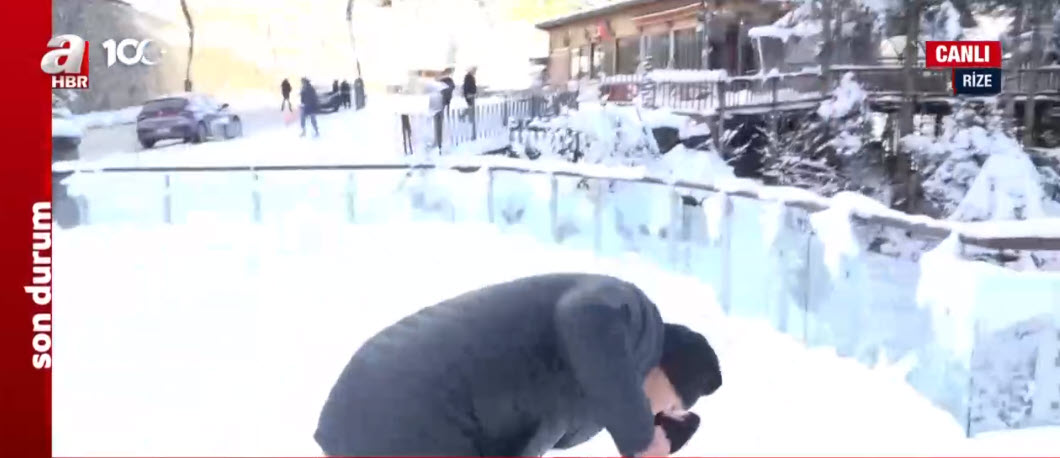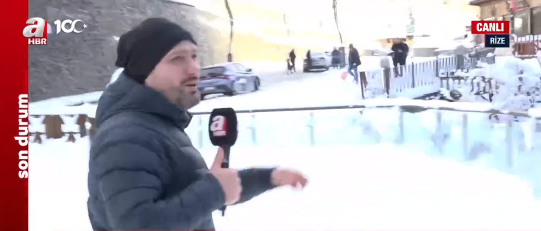Kar yağışı sonrası Rize Ayder Yaylası, beyaz örtü ile kaplandı. Bölgeden detayları aktaran A Haber muhabiri Selman Kutlu, canlı yayınında zor anlar yaşadı. İşte o görüntüler...
