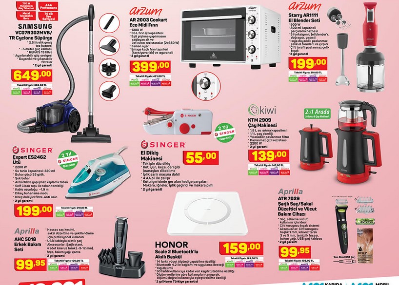 A101 15 Nisan 2021 aktüel ürünler kataloğu, günün en çok aranılanları arasında yer alıyor. A101 marketlerin bu haftaki kataloğunda sürpriz ürünler müşterilerini bekliyor. Teknolojiden elektronik ev aletlerine, züccaciyeden gıda ürünlerine çeşit çeşit ürünler satışa çıktı. 15 Nisan A101 kampanyalarına ahaber.com.tr'den ulaşabilirsiniz. Peki, A101'de bu hafta neler var? A101 müşterilerini neler bekliyor? İşte 15 Nisan 2021 A101 aktüel ürünler kataloğu ve fiyat listesi...