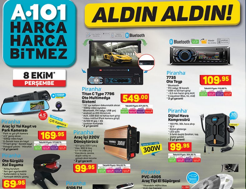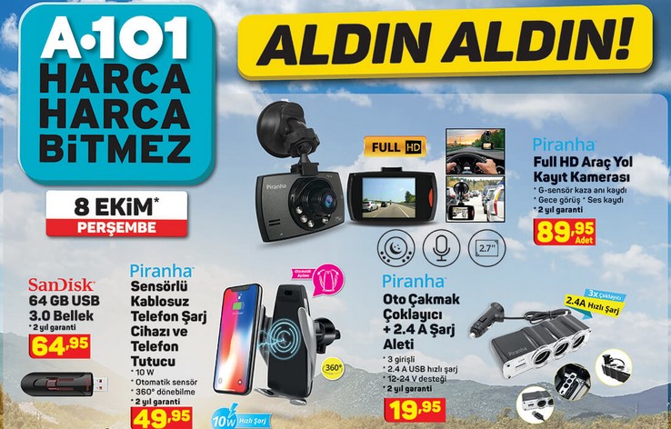 A101 8 Ekim 2020 aktüel ürünler listesi merak ediliyordu. Yayımlanan katalog ile birlkte merak edilen detaylar açıklandı. Haftanın sürpriz ürünleri arasınd teknolojik ürünler, elektronik ev aletleri, otomobil ürünleri, züccaciye ve gıda gibi dolu dolu ürünler yer alıyor. A101 market 8 Ekim kampanyalarına ahaber.com.tr'den ulaşabilirsiniz. İşte 8 Ekim 2020 A101 aktüel ürünler kataloğu...