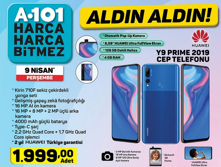A101 9 Nisan 2020 Perşembe aktüel ürünler kataloğu yayınlandı. A101'de bu hafta neler var? A101'de haftanın ürünleri merakla bekleniyordu. İndirimli ürünleri her hafta müşterilerine sınan A101 marketlerin aktüel ürünleri yakından takip ediliyor. A101 aktüel ürünler bu hafta yine dopdolu. A101 marketlerde bu hafta; Huawei Y9 Prime 2019 cep telefonu, Hı-Level 49" HL49DLK08 Full HD Dual Led televizyon ve birçok ürün dikkat çekiyor. Aynı zamanda züccaciye, gıda, hırdavat, tekstil, temizlik ve bakım ürünleri de A101 aktüel ürünler 9 Nisan kataloğunda yer alıyor. İşte, A101 aktüel ürünler kataloğu ve fiyat listesi...