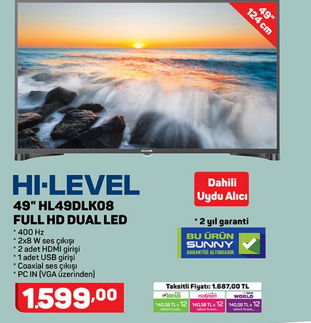 Kredi kartı aracılığı ile 6 taksite kadar sahip olma fırsatu sunulan, dahili uydu alıcılı, 2 yıl garantili, USB üzerinden medya oynatabilme özellikli HI-LEVEL FullHD Dual LED TV 1599 TL. Kablosuz bağlantı sayesinde müzik dinlemenizi sağlayacak, sesli arama özellikli, USB ve hafıza kartı ile çalıştırabileceğiniz Piranha Bluetooth Hoparlör 34,95 TL. Koşu ve spor hareketlerine uygun olarak tasarlanmış, 2 yıl garantili Piranha Bluetooth Spor Kulaklık 39,95 TL.