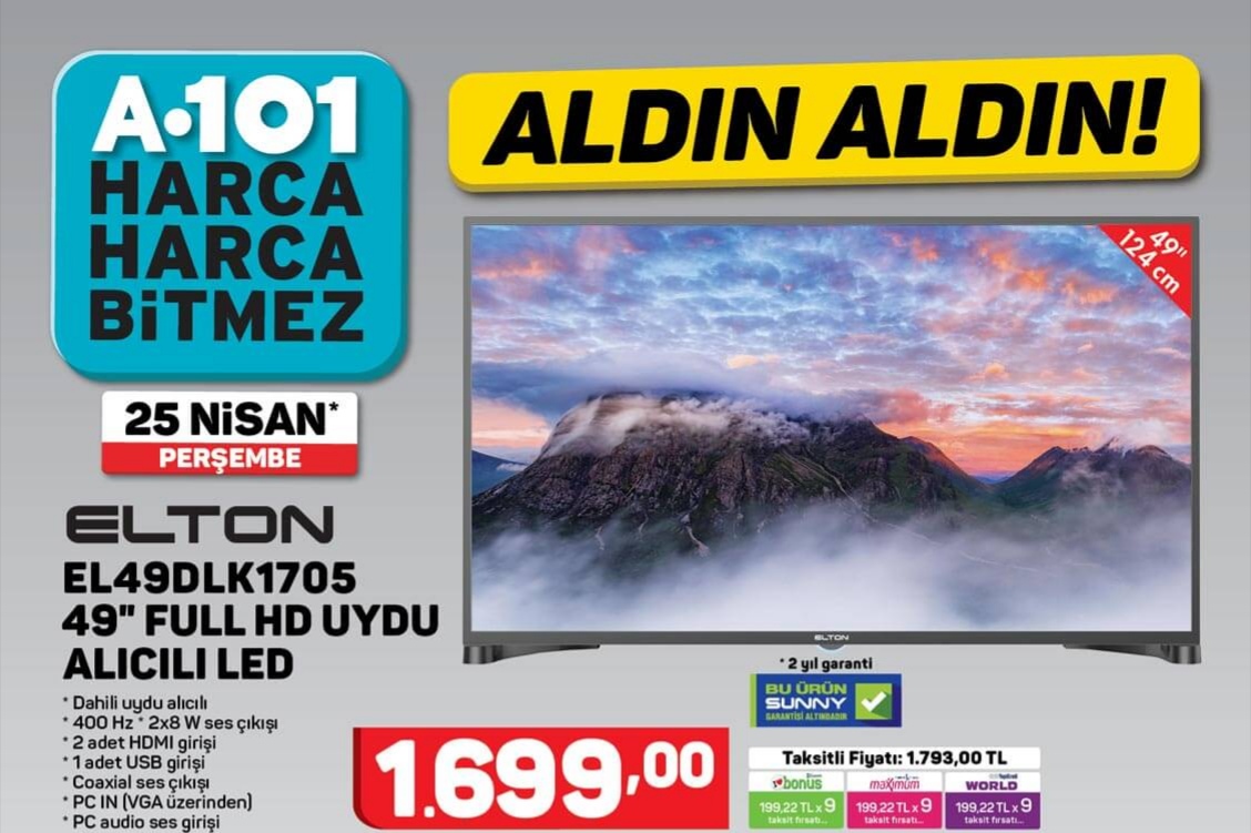 A101 kataloğu 25 Nisan ile raflarda olacak Elton Led TV daha önce de satışa çıkarılmış ve kısa sürede tükenmişti. Onbinlerce kişi Elton Led TV fırsatını kaçırmamak için araştırmalar yapıyor. Fiyatı ile özelikleri mukayese edildiğinde Elton Led TV'nin cazibesi daha da artıyor. İşte A101 kataloğu ile raflarda olacak olan Elton Led TV'nin özellikleri...