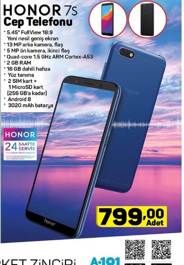 A101 aktüel ürünler kataloğu 9 Mayıs ile cep telefonu fırsatı da raflarda olacak. Honor 7s cep telefonu üstün özellikleri kadar uygun fiyatı ile de dikkat çekiyor. Türkiye'de yalnızca A101'de satılan Huawei'n alt markası Honor teknolojik cihazları ile biliniyor. İşte A101 aktüel ürünler kataloğu 9 Mayıs ile gelecek olan Honor 7s ve özellikleri...