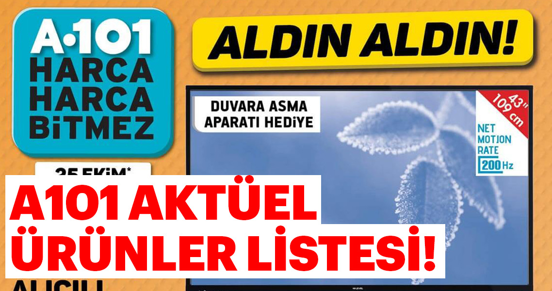Her hafta olduğu gibi bu hafta da A101 aktüel indirimli ürünler listesi heyecanı başladı. Her hafta Perşembe günleri indirimli teknolojik ev aletleri, televizyon, akıllı telefon, mobilya, nevresim takımı gibi herkesin kullandığı ürünlerde indirime giderek vatandaşa kolaylık sağlayan A101 bu hafta da 25 Ekim Perşembe aktüel ürünler listesi ile yine dopdolu! Peki, A101 aktüel ürünler listesinde neler var? İşte A 101 aktüel ürünleri tam listesi...