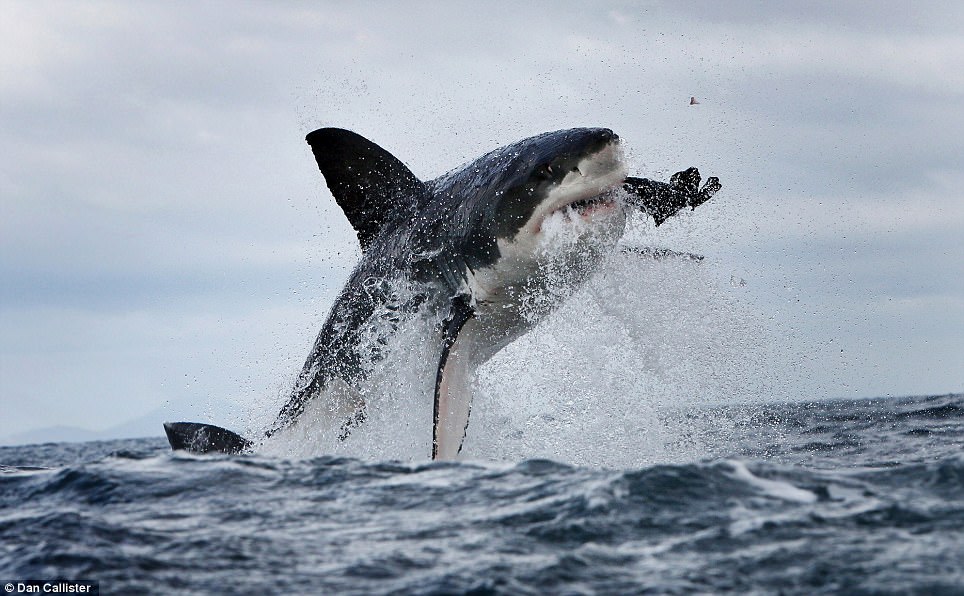 Fotoğrafçı Dan Callister'ın çektiği karelerde, denizlerin devlerinden büyük beyazın bir foku mideye indirdiğine tanıklık ediyorsunuz. Ancak o da ne? Havada süzülen bir diş mi yoksa?