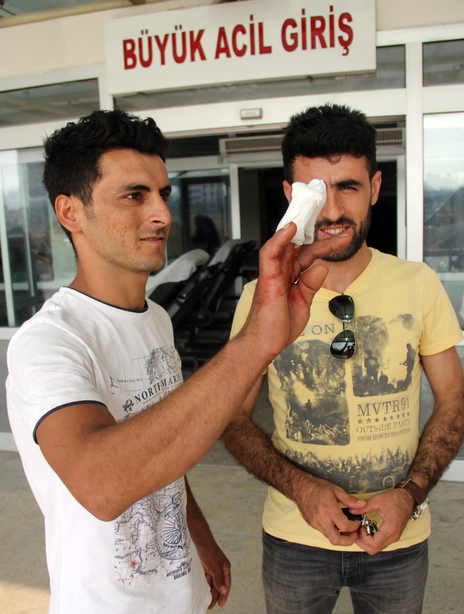 Kurbanı kesmeye ya da derisini yüzmeye çalışırken yaralanan acemi kasaplar, özel araçlarla hastanelere getirilirken, yarası derin olanlar ambulanslarla getirildi.