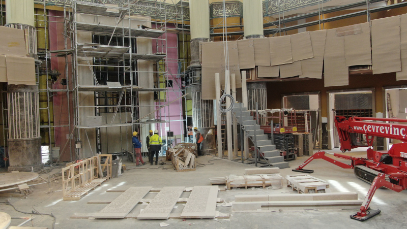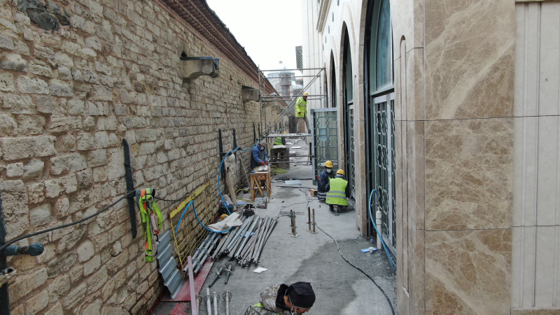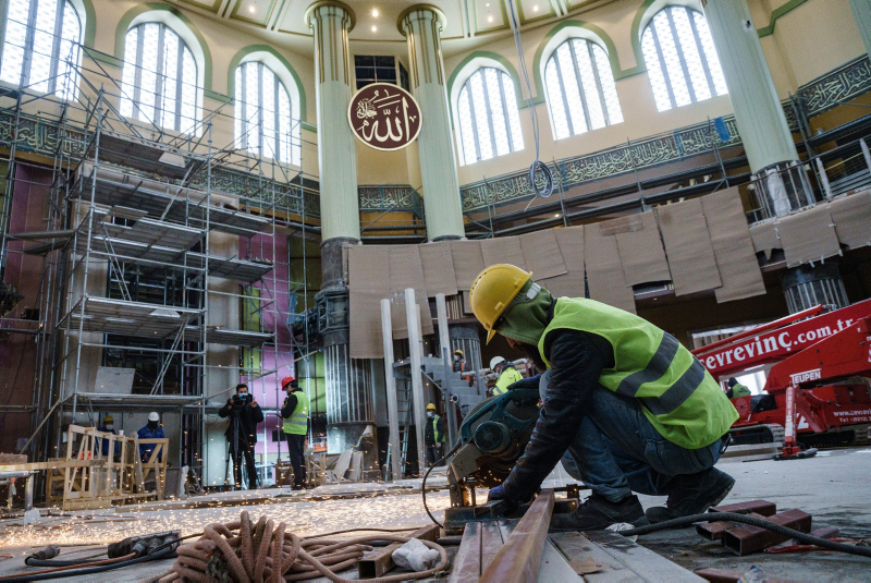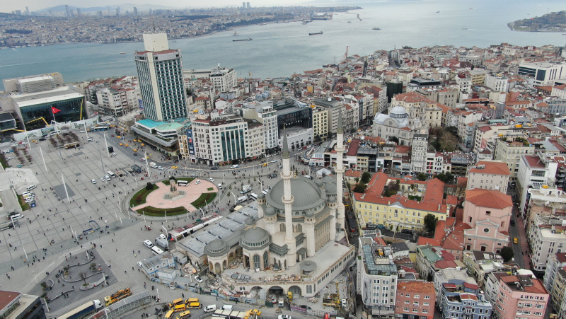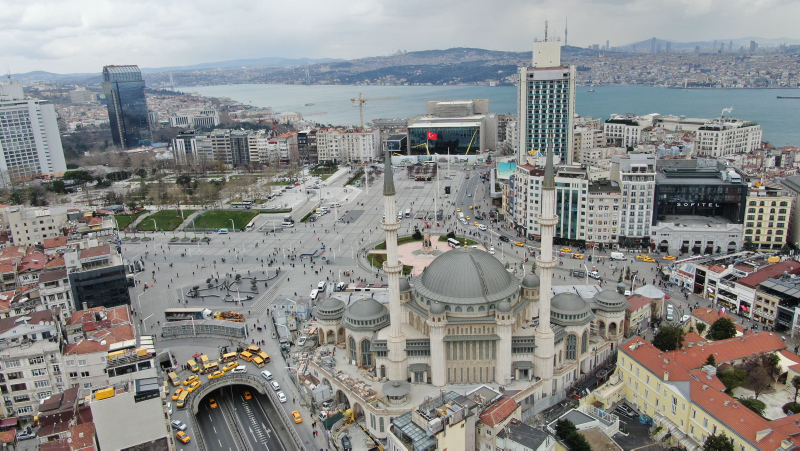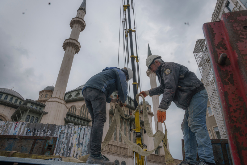 Taksim Meydanı'nda 2 bin 482 metrekare arsa ve 16 bin 220 metrekare inşaat alanına sahip camideki çalışmalar son aşamaya geldi.