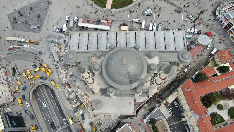 Taksim'de ibadete açılmasına çok az süre kalan caminin içindeki çalışmalarda son durumu drone ile görüntülendi. Camide taş kaplama çalışmalarında son aşamaya gelindi. Mihrabın yapımı ise devam ediyor. Taksim Camii'nde şadırvan da ortaya çıktı. Cami içi ve dışındaki son durum havadan görüntülendi.