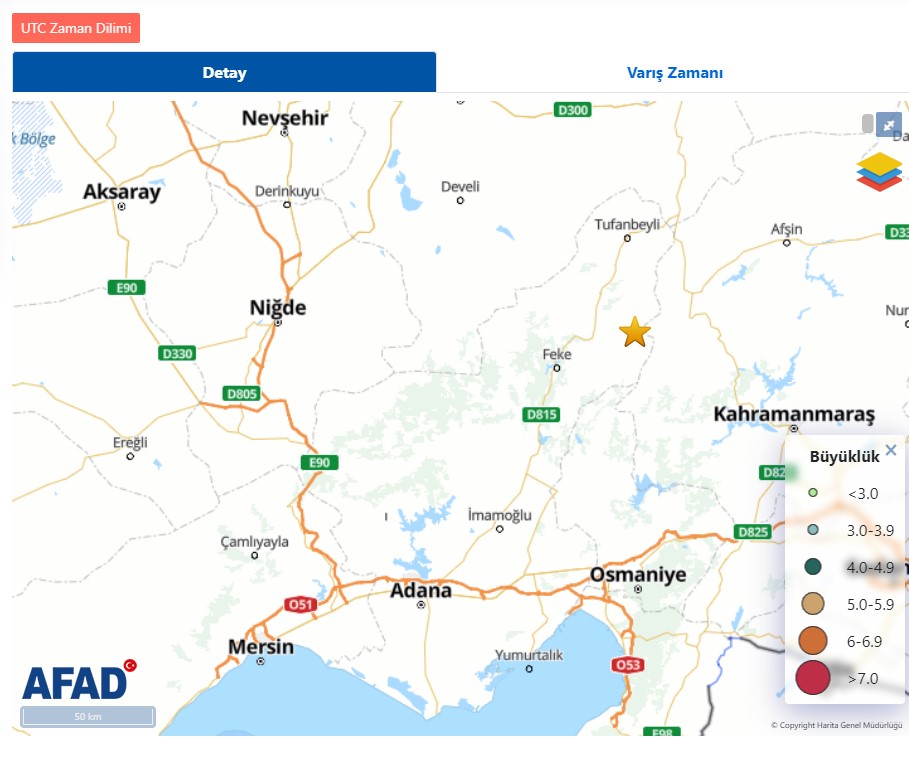 Afet ve Acil Durum Yönetimi Başkanlığı (AFAD) Adana'nın Saimbeyli ilçesinde deprem meydana geldiğini duyurdu.