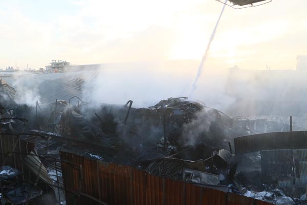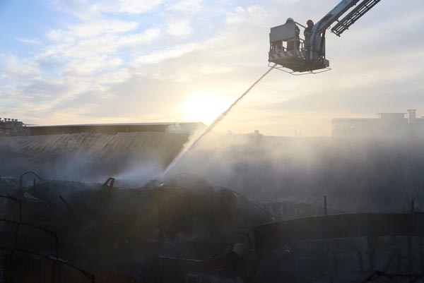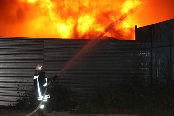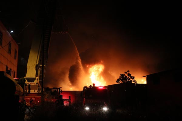 Fabrikanın malzeme toplama deposundan bir anda alevler yükselmeye başladı. Alevler kısa sürede tüm fabrikayı kapladı.
