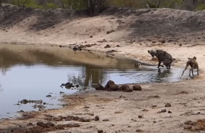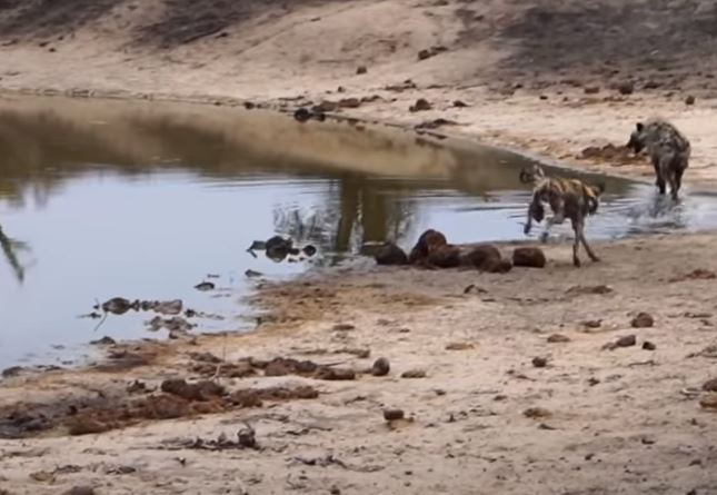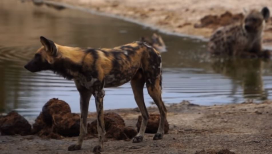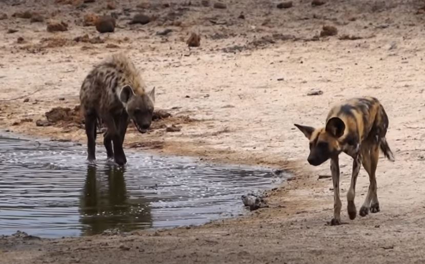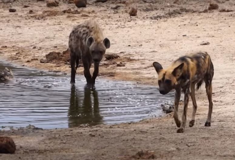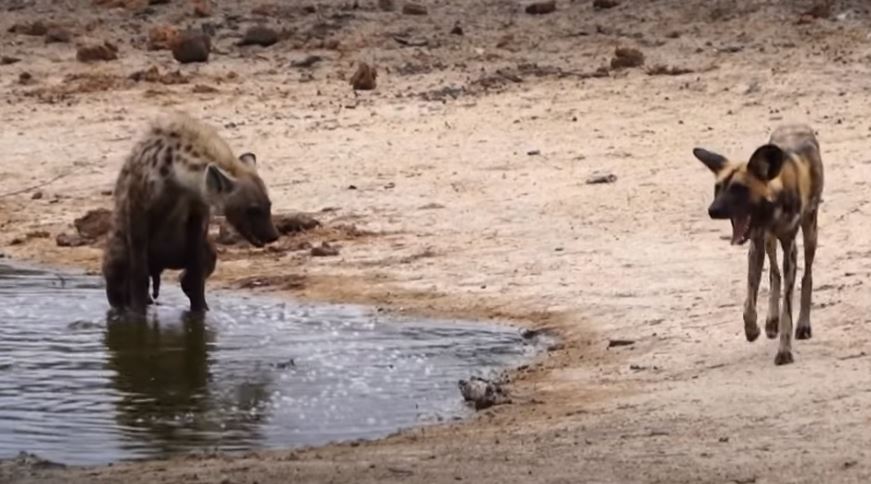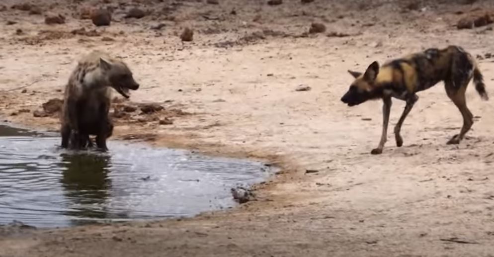 Sürü halinde gezen ve vahşi doğanın en acımasız hayvanları olarak bilinen sırtlan ve Afrika yaban köpeği bu kez karşı karşıya geldi.