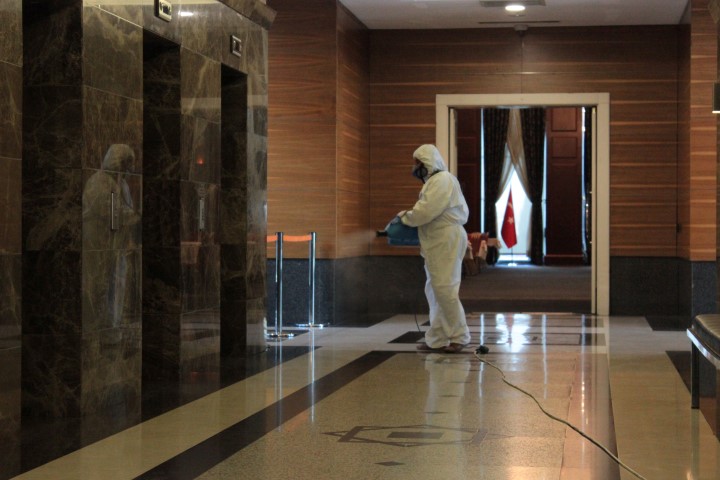 Çin'in Vuhan kentinde ortaya çıkan ve dünya genelinde 124 ülkede görülen koronavirüs (corona virüs) yayılmaya devam ediyor. Ölümlerin çoğunlukla yaşlı nüfus oranına sahip olan Çin, İtalya ve İran'da meydana geldiği virüs ile ilgili şu ana kadar yaklaşık 5 bin kişi hayatını kaybetti. Sağlık Bakanı Koca ise Türkiye'ye 5 kişide bu virüse rastlanıldığını söylemesinin ardından tedbirler artırıldı. Bu kapsamda AK Parti Genel Merkezi koronavirüs önlemleri kapsamında tedbir amaçlı dezenfenkte edildi.