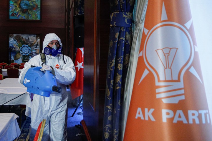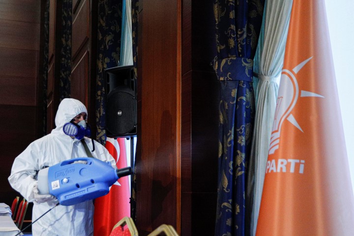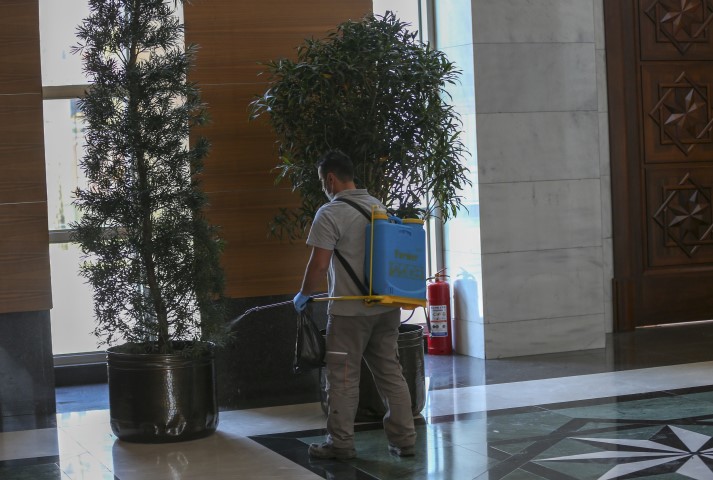 Türkiye'de görülen yeni tip koronavirüs nedeniyle AK Parti Genel Merkezi'nde de dezenfeksiyon çalışması başlatıldı.