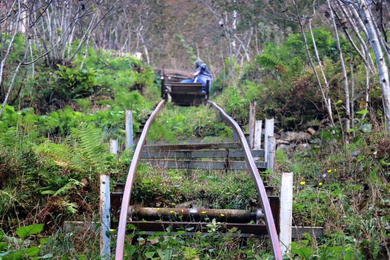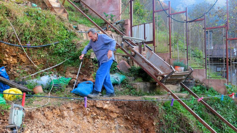 Trabzon'un Köprübaşı ilçesinde makine teknikeri Hüseyin Kadıoğlu (71), araç yolu olmayan sarp arazideki evine döşediği 110 metre uzunluğundaki raylı sistem sayesinde elektrikli motorla çalışan vagonla ulaşım sağlıyor.