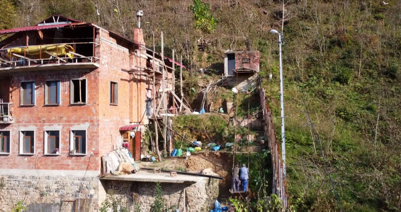 Düzeneği anlatan Kadıoğlu, "Teknik birçok özellikleri var. Çalışırken tek halat kesilirse kaza olur. Elektrik kesilse sadece durur, bir aksilik olmaz. Burada ev yapacakken ayak basacak kadar düz yer yoktu. Bu makine olmasaydı bunları yapmak mümkün değildi. Misafirlerimiz oluyor; hanıma diyorum 'al kumandayı sen in, al gel'. Böyle olunca itimat oluyor. Çok heyecan verici olduğunu söylüyorlar" diye konuştu.