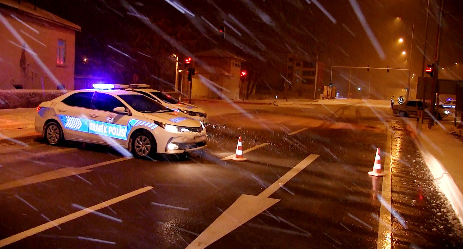 Aksaray'da gün boyu etkisini sürdüren kar yağışı gece yarısı da etkisini sürdürdü.