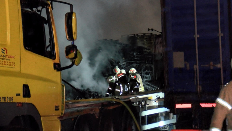 Alevler tüm parkı sardı! Beylikdüzü'nde yangın: 4 TIR kullanılamaz hale geldi.