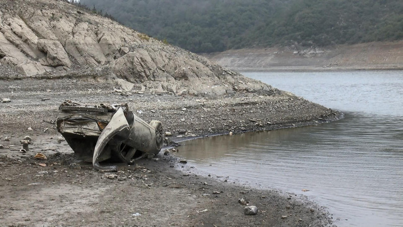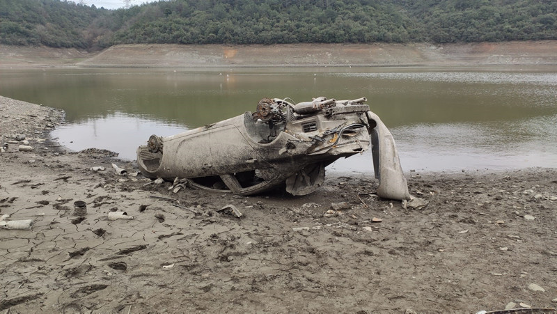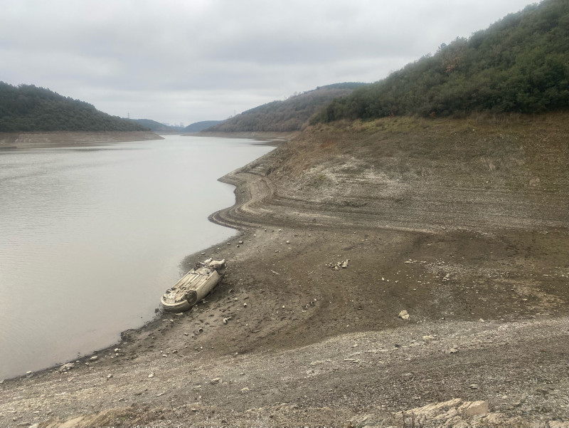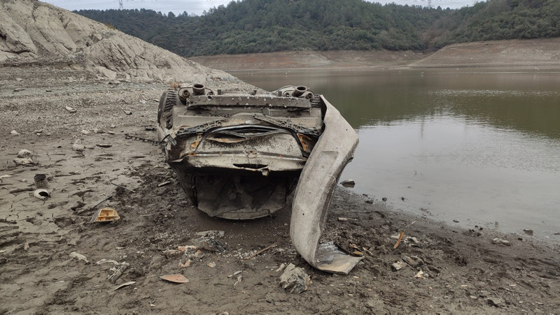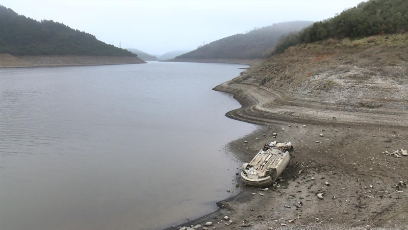Alibeyköy Barajı'nda su seviyesi kritik noktada! Batık araç gün yüzüne çıktı