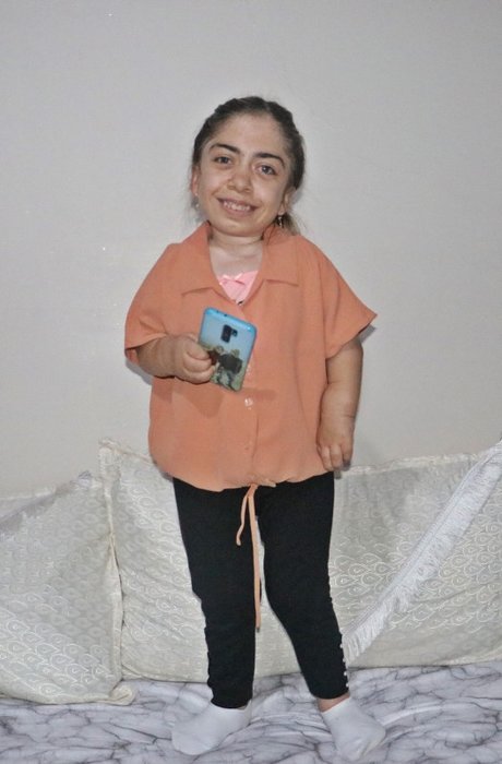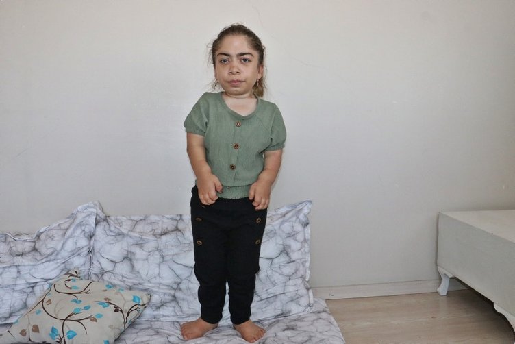 Diyarbakır'da yaşayan Maroteaux- Lamy (MPS Tip 6) hastası, 104 santimetre boyundaki Medine Sayan'ın ailesi, bayram ziyareti için Mardin'in Kızıltepe ilçesine gitti.