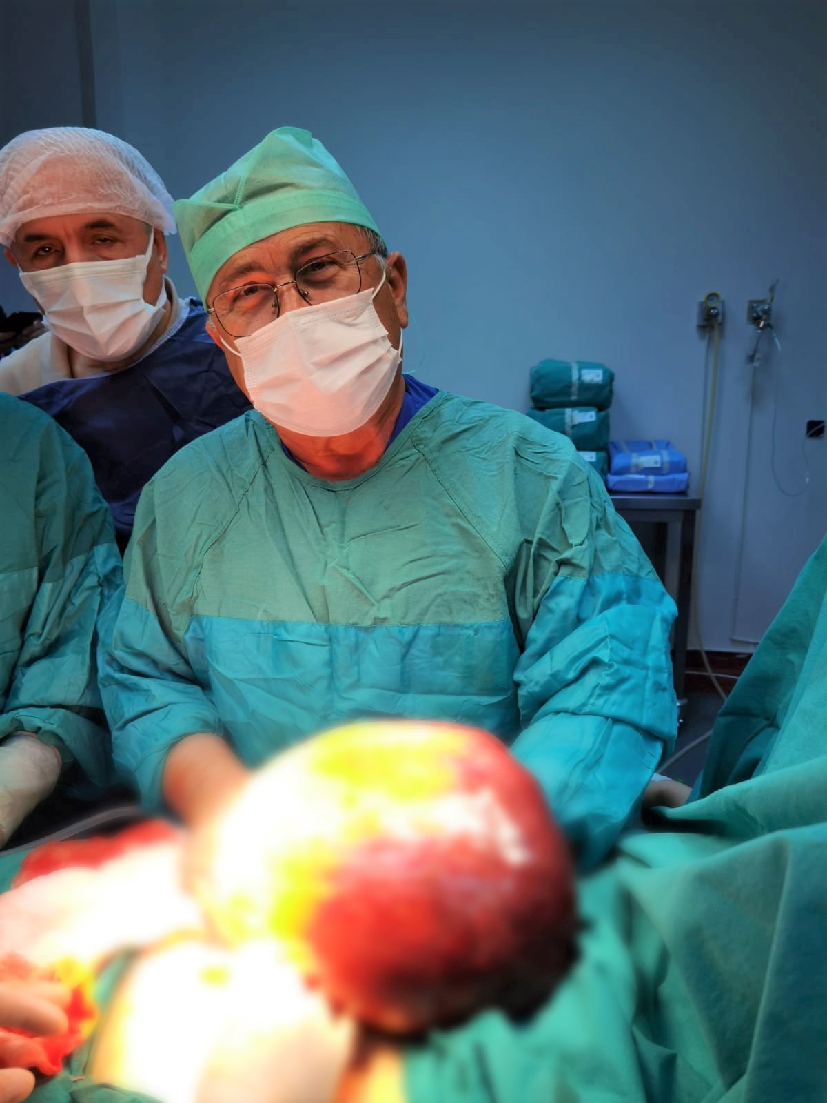 Ekibiyle birlikte operasyonu gerçekleştiren Kadın Hastalıkları ve Doğum Uzmanı Prof. Dr. Osman Fadıl Kara, "Hastamızda geldiğinde kaburga altına kadar büyüyen 7 aylık gebelik gibi görünen bir kitle olduğunu fark ettik. Operasyonda karnı açtığımızda yaklaşık 5 kiloluk bir kitle olduğunu görüp çıkardık. Şu an hastamızın durumu iyi" diye konuştu.