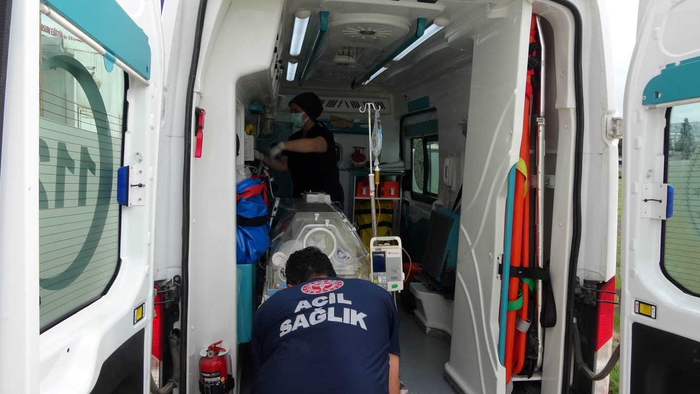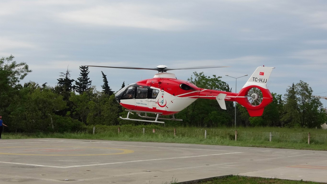 Durumu ağırlaşan ve Samsun Ondokuz Mayıs Üniversitesi (OMÜ) Tıp Fakültesi Hastanesine sevkine karar verilen bebek için ambulans helikopter talep edildi.