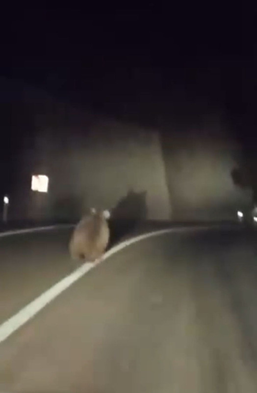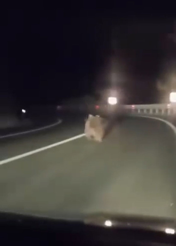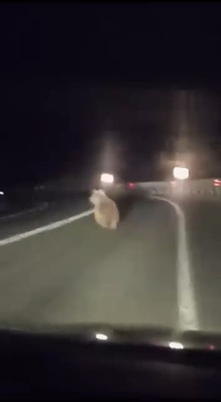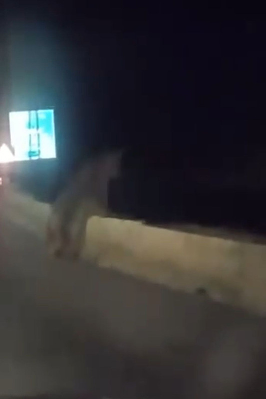 Görüntüler Bursa Nilüfer'de kayda geçti. Bir anda kara yoluna çıkan ayı bu sırada otomobille yoldan geçen 2 arkadaş tarafından cep telefonu kamerasıyla görüntülendi.