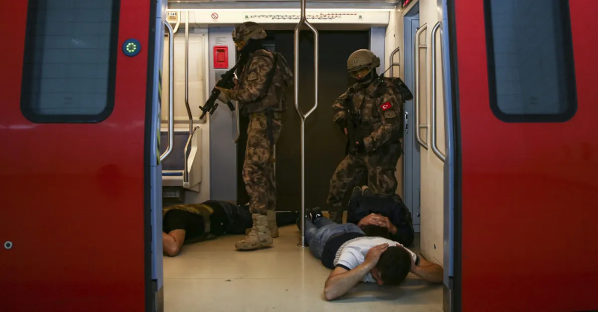 Ankara Emniyet Müdürlüğü Özel Harekat Şube Müdürlüğü ekipleri, başkent metrosunda nefes kesen bir rehine kurtarma tatbikatı yaptı. Senaryo gereği metroyu ele geçiren terörist kılığındaki meslektaşlarını saniyeler içersinde etkisiz hale getiren özel harekatçılar, rehineleri ise burunları dahi kanamadan kurtarmayı başardı.
