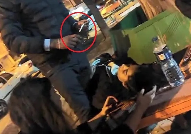 Şüphelinin de geri dönüp Merve'ye saldırdığı anlar görüntüde yer aldı. Ayrıca şüphelinin, çevredekilerin de müdahalesiyle banka yatırılan Merve ağır yaralı halde ambulans beklerken, başında sigara içtiği görüntü de ortaya çıktı.