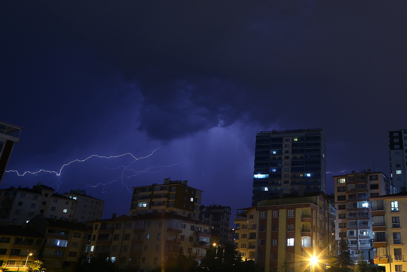 Ankara'da, gece saatlerinde yağmurla birlikte etkili olan şimşekler gökyüzünü aydınlattı. Vatandaşlar, art arda çakan şimşekleri cep telefonu kamerası ile kaydetti.