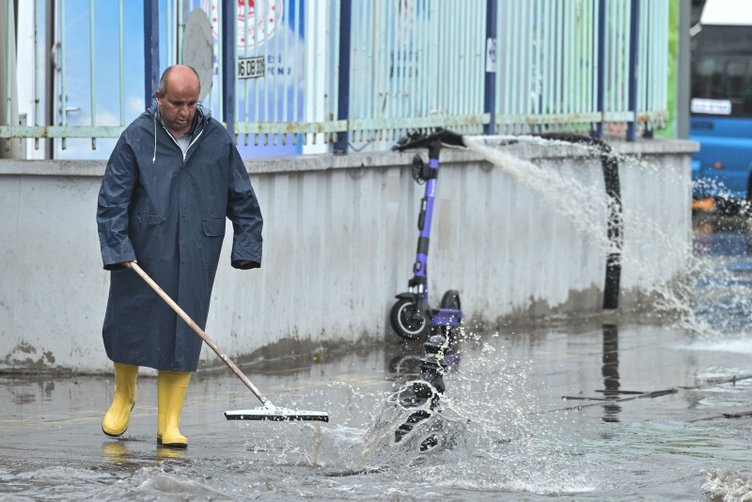 Altındağ ilçesi Siteler Sarıgöl Caddesi'nde bazı iş yerlerini su bastı, belediye ekipleri dükkanlardan suyun tahliyesi için çalışma başlattı. Bazı araçlar ise teker seviyesine kadar suya battı.
