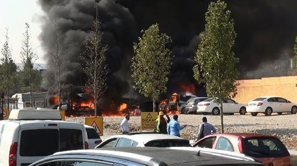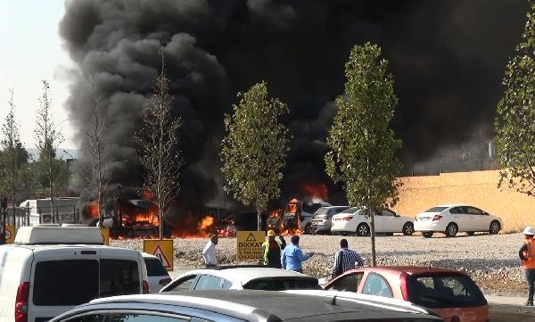 Ankara'da park halindeki 6 araç alev alıp yandı