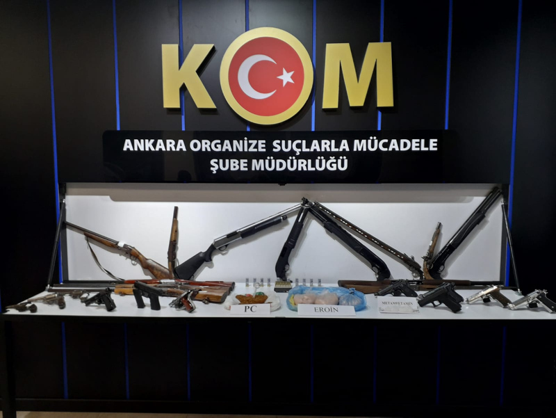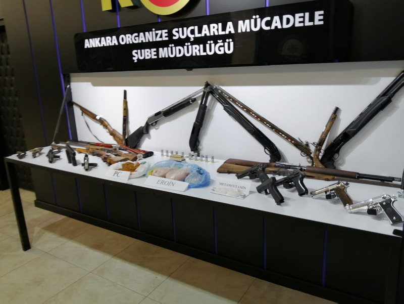 Ankara'ya il dışından getirdikleri yüklü miktardaki uyuşturucuyu ve silahları piyasaya sürerek haksız kazanç elde eden ve aralarında husumet bulunan iki ayrı suç çetesine yönelik Ankara merkezli 5 ilde düzenlenen operasyonda 29 kişi gözaltına alındı.