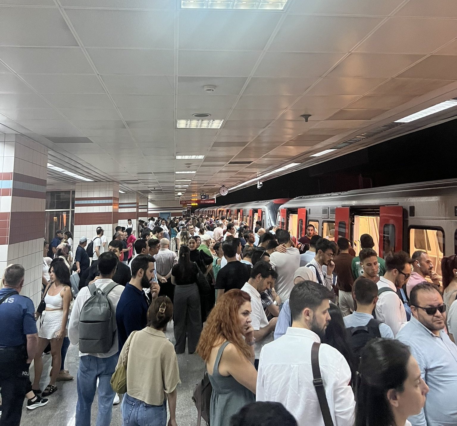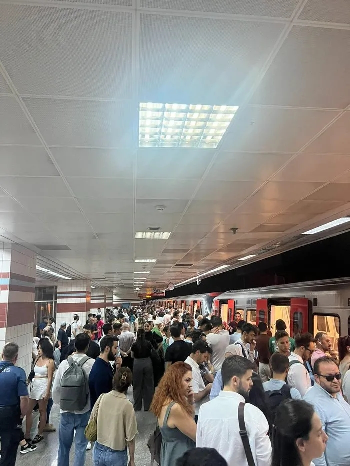 Ankara'da aşırı sıcak hava nedeniyle M2 (Kızılay-Koru) metro hattının güç kaynağı ve haberleşme sisteminde meydana gelen arıza nedeniyle seferler durduruldu. Güzergahta bulunan birçok metro istasyonun çıkışında yoğunluk yaşandı ve uzun otobüs kuyrukları oluştu. Binlerce vatandaş mağdur olurken EGO Genel Müdürlüğü tarafından gece saatlerinde yapılan açıklamada, Ankara Metrosu M2 hattında yaşanan haberleşme ve güç kaynağı arızalarının saat 4,5 saat sonra giderildiği belirtildi. İşte kare kare ulaşımın çileye döndüğü o anlar...