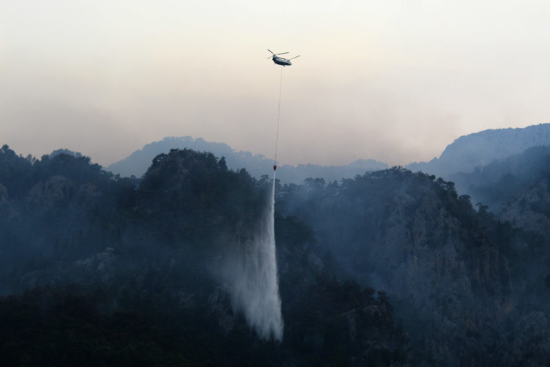 Yangını kontrol altına alma çalışmalarına sabah saatlerinde havalanan çok sayıda helikopter ve uçak da katıldı.