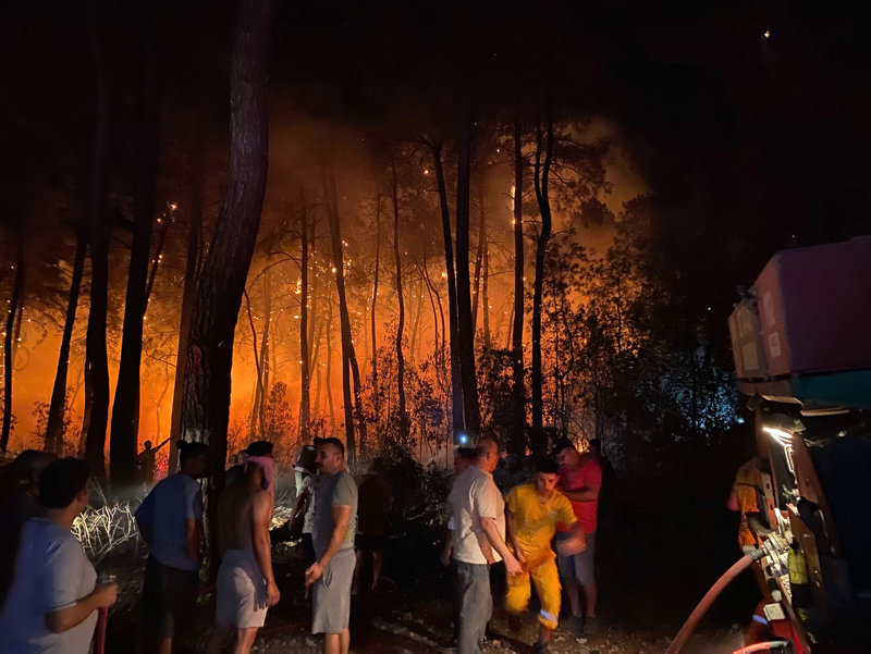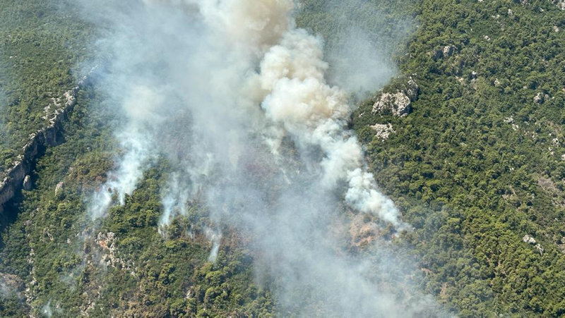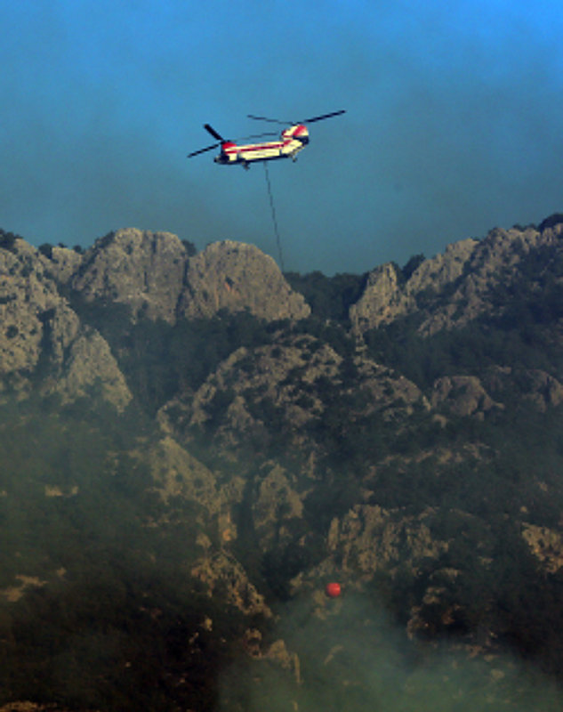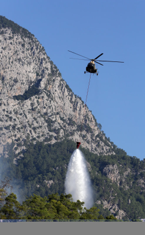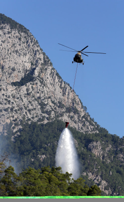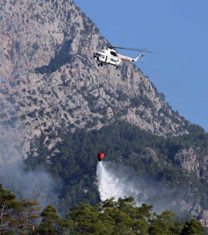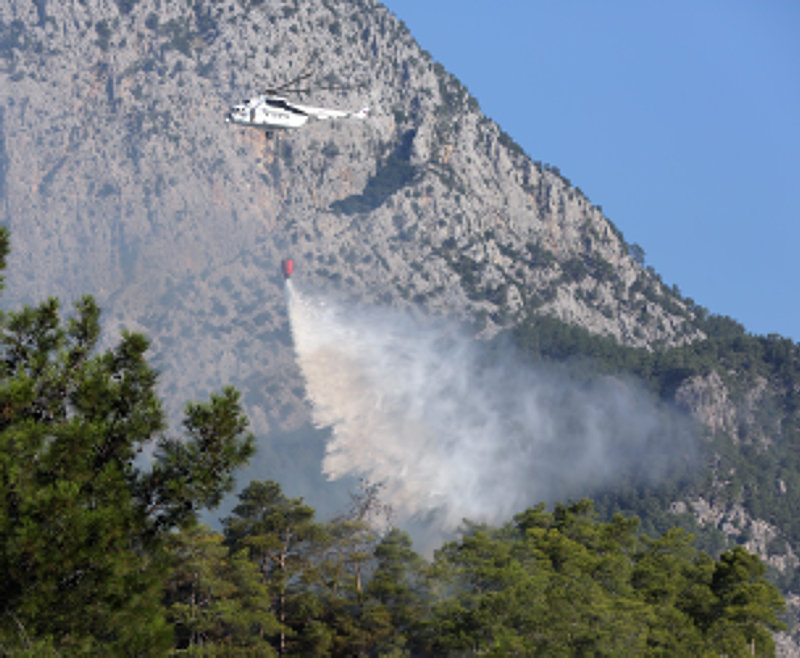 Gün doğumuyla birlikte havadan müdahalenin de başladığı yangında 10 uçak ve 22 helikopter görev yapıyor. Kültür ve Turizm Bakanı Mehmet Nuri Ersoy, bugün sabah saatlerinde yaptığı açıklamada, "Şu an gece oluşturulan yığınakla birlikte bin 50 personel, 10 uçak ve 22 tane de helikopter olmak üzere araziye yoğun bir şekilde müdahale ediliyor.