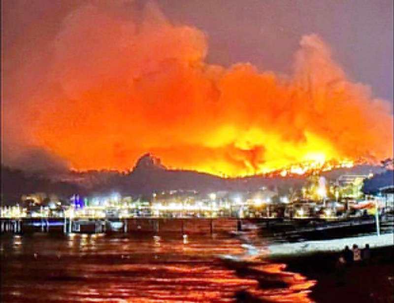 Antalya Kemer'deki orman yangını şiddetli rüzgârın da etkisiyle devam ediyor. Ekipler alevlere müdahalesini sürdürürken, yaklaşık 35 kilometre uzaklıktaki Antalya kent merkezinden görüntülenen duman yoğunluğu yangının boyutunu gözler önüne serdi.