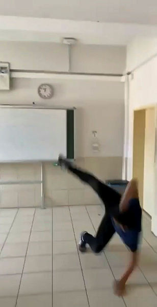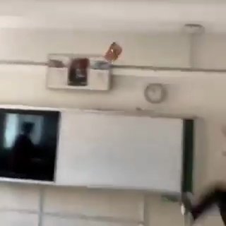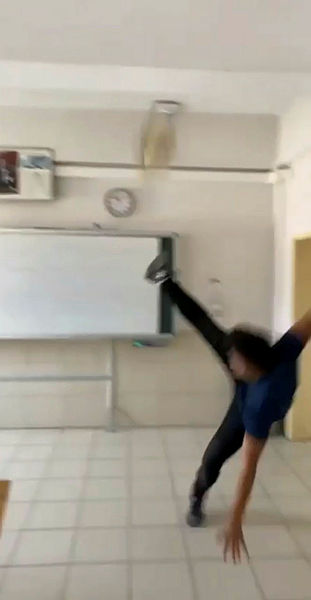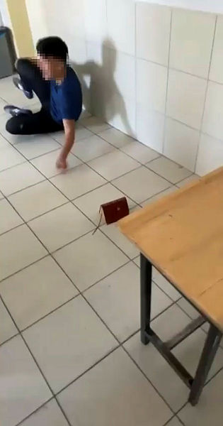 Diğer öğrenci de Kur'an-ı Kerim'e röveşata attı. Bir başka öğrenci ise o anları cep telefonuyla kayıt altına aldı.