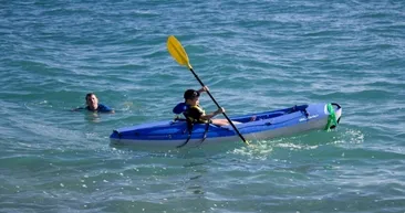 Bazı tatilciler denize girdi, bazıları çocuklarıyla kano yaptı.