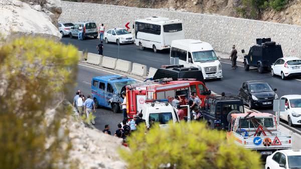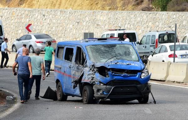 Antalya'da jandarma ekip aracının geçişi sırasında meydana gelen patlamada 2 asker yaralandı.