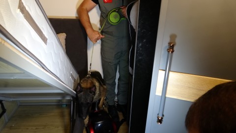 Köpeklerin yatak odasındaki yatağa tepki vermesi üzerine, kaldırılan bazanın altından poşetlere doldurulmuş 50 kiloya yakın eroin maddesi, evin diğer bölmelerinde de uyuşturucu madde üretiminde kullanılan eşyalar ele geçirildi.