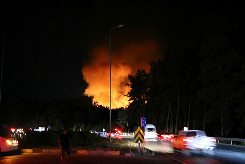 Yangın yerine yakın noktada bulunan bir akaryakıt istasyonunun etrafında da ekipler önlem aldı. Telsizden çok sayıya insan gücüne ihtiyaç olduğu çağrısı yapıldı. Ekipler, yangın söndürme çalışmalarını yoğun şekilde sürdürüyor.