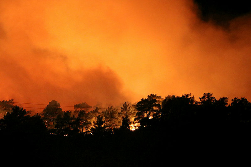 "Arazözler, iş makinalarıyla yangının başlamasından itibaren on dakika sonra müdahale edildi. Şu an itibarıyla arazinin sarp, kayalık olması münasebetiyle karadan müdahalede ciddi zorluklar yaşanıyor. İş makinaları, 50'den fazla arazöz, 300'den fazla yangın söndürmede görev alan tecrübeli iş gücümüzle müdahale edilmektedir. Rüzgarın şiddeti şu anda saatte 10 kilometre civarındadır. İnşallah sabah ışıklarıyla hava gücümüz 22 helikopter ve 10 uçakla buradaki yangına müdahale edilecek. En kısa sürede yangın kontrol altına alınacaktır. Bu saat itibarıyla takriben 60 hektar civarında bir alan, bu yangından etkilenmektedir. Yerleşim yerlerinde şu anda bir tehlike görülmemektedir. Yerleşim yerine yaklaşan bir tehlike yoktur."