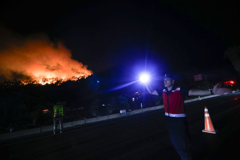Gece görev yapabilecek uçakların olmaması nedeniyle havadan müdahale yapılmadığını belirten Topaloğlu, "Orman Bölge Müdürlüğünün, belediyenin tüm araçları burada, TOMA'lar da geliyor ancak bölgeye karadan ulaşımda sıkıntı yaşanıyor. Yol olmadığı için araçlar ormanlık alana giremiyor." diye konuştu.