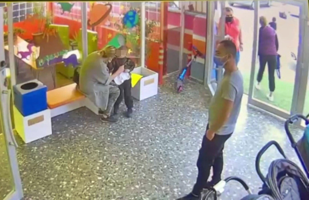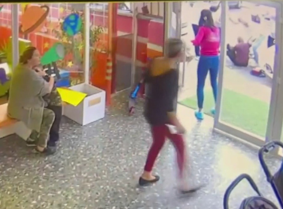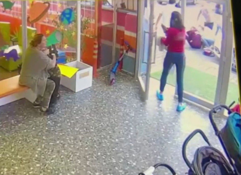 DEHŞET ANLARI KAMERADA Yürekleri ağza getiren kaza anıysa kreşin güvenlik kamerasına saniye saniye yansıdı.