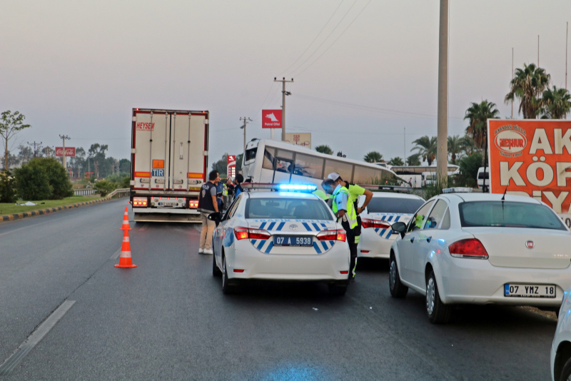 Kaza bugün sabah 05.20 sıralarında Serik-Aksu D400 Karayolu'nun Aşağı Kocayatak mevkiinde meydana geldi. Belek turizm bölgesinde bulunan otellerde tatili biten 25 turisti havalimanına götürmek üzere Antalya istikametine doğru yola çıkan Zabit Bayat (49) idaresindeki 07 BCG 786 plakalı midibüse, mola vermek için sağa doğru dönüş yapacağı sırada arkadan gelen Süleyman K. (46) yönetimindeki 07 UG 171 plakalı TIR çarptı.