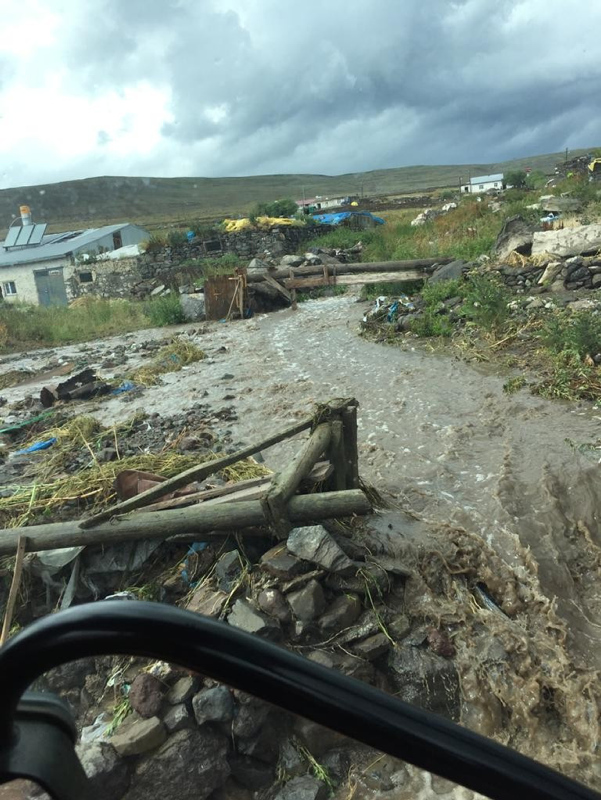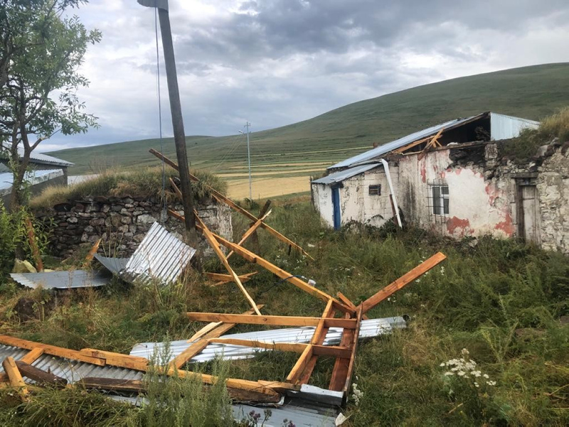 Ardahan'da etkili olan yağmur, fırtına ve dolu hayatı felce uğrattı. Merkeze bağlı mahallelerde su baskınları sonucu ekili arazilerde zarar meydana gelirken, Göle ilçesinde yaşanan hortumda evlerin çatıları yıkıldı.