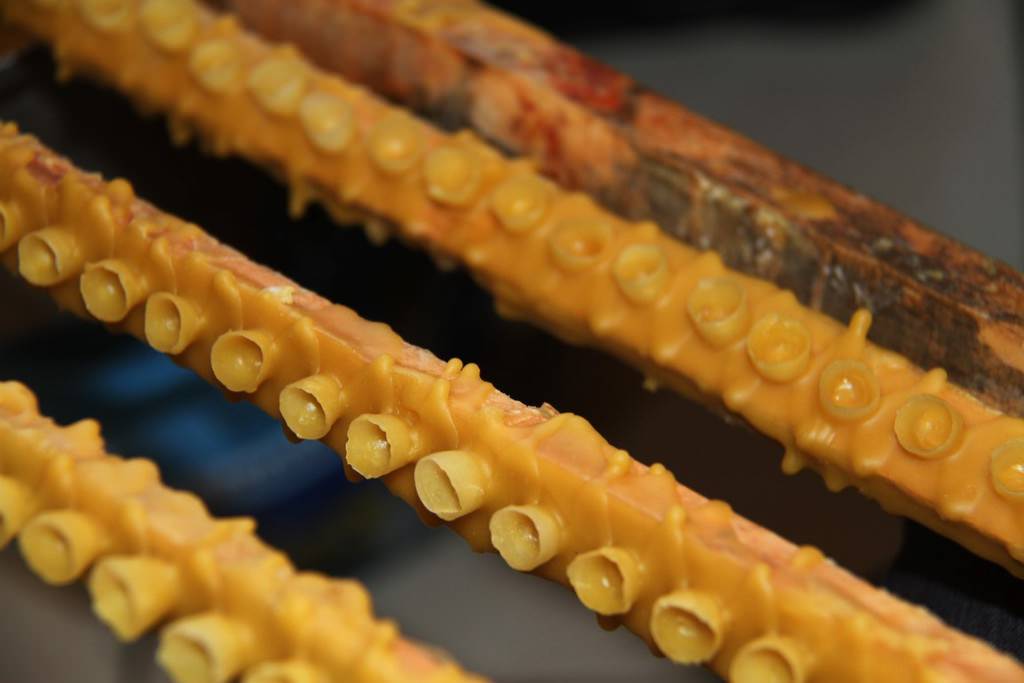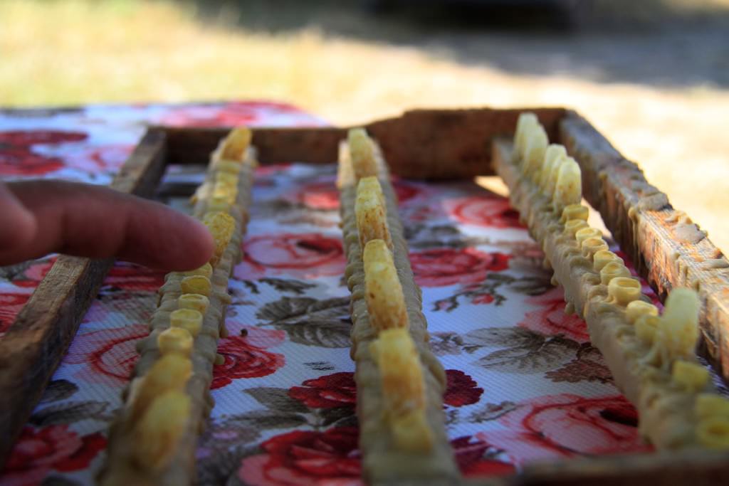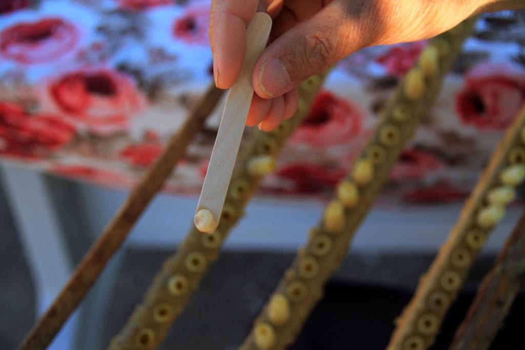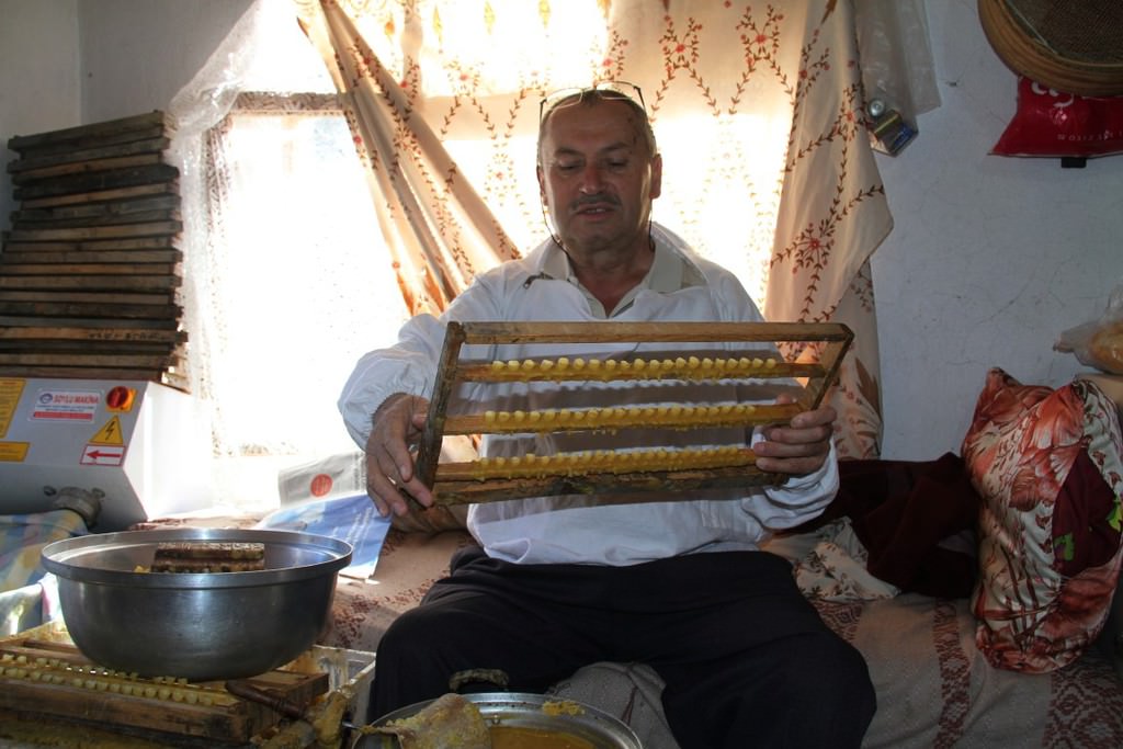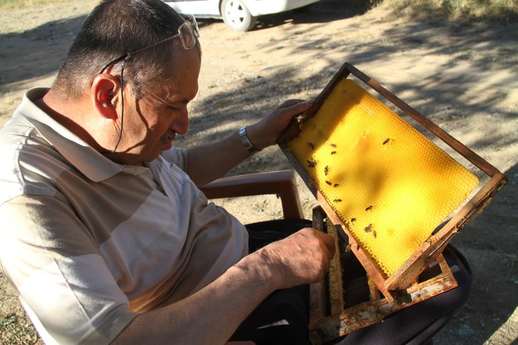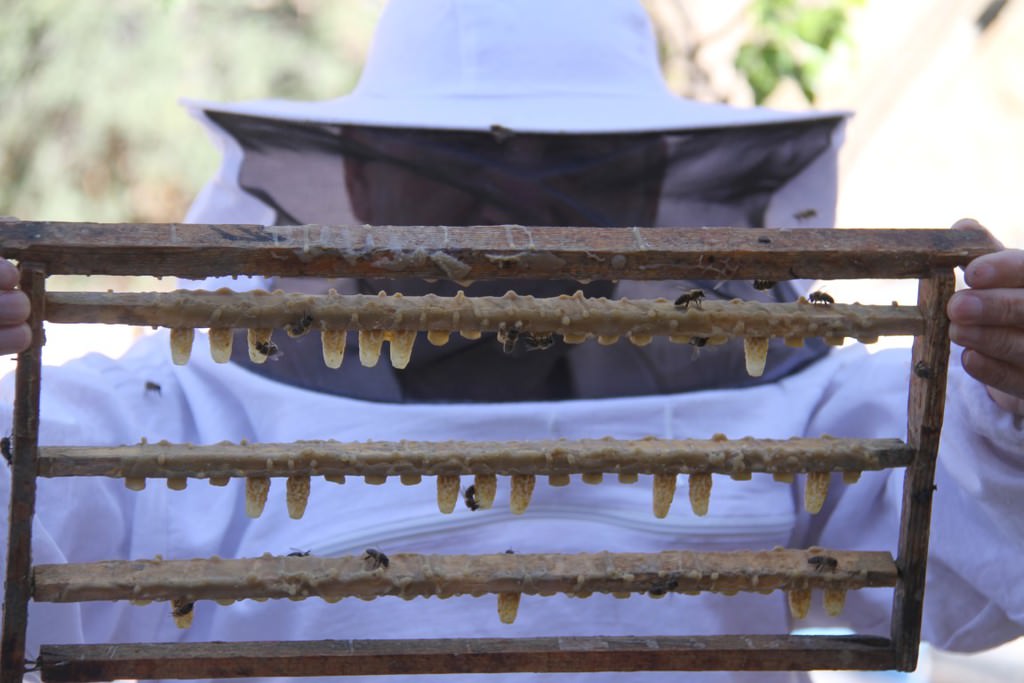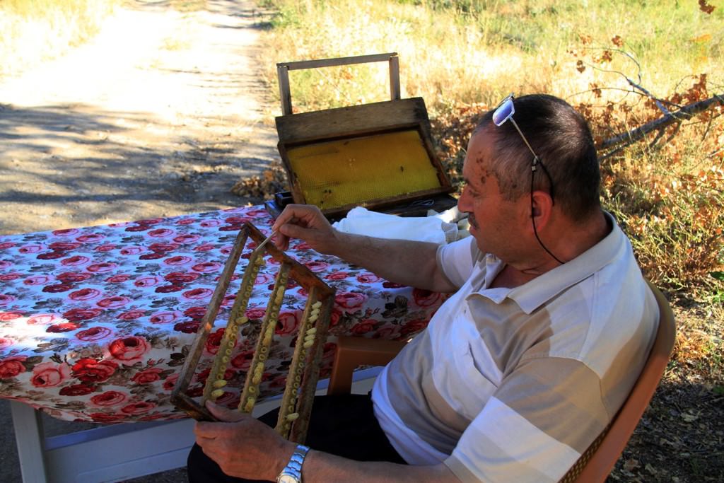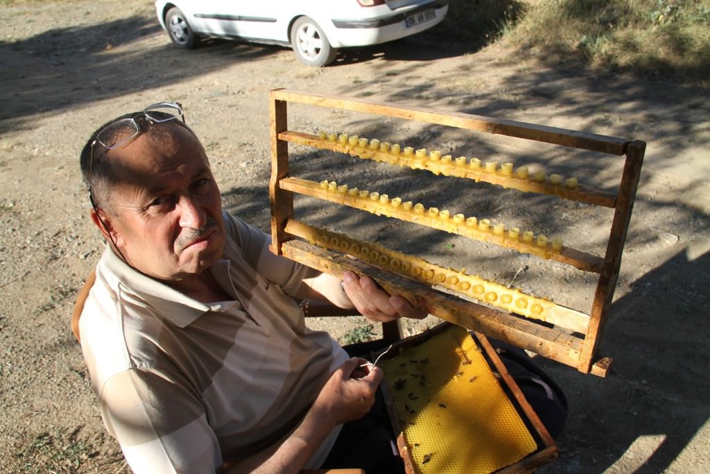 "İlk önce erimiş mumdan ana arı yüzüklerini yapıyoruz. Ondan sonra bu yüzükleri çıtalara yapıştırıyoruz. Peteklerdeki larvaları 'biz' benzeri bir iğneyle yüzüklerin içine transfer ediyoruz. Ana arısı olmayan bir kovana bu aktardığımız yavruları yerleştiriyoruz. Sütler oluşmaya başladığında yüzüklerin gözleri kapanacak konuma geliyor. 48 saat sonra ideal zamana ulaşan gözlerdeki sütler ahşaptan küçük kaşıklarla alınarak muhafaza ediliyor. Arı sütleri gözlerden alınmazsa gözler kapanır ve ana arıya dönüşür. Çıtalara monte edilen gözlerdeki arı sütü alındıktan sonra tekrar içine larvalar yerleştiriliyor. Bu süreç böyle devam ediyor."