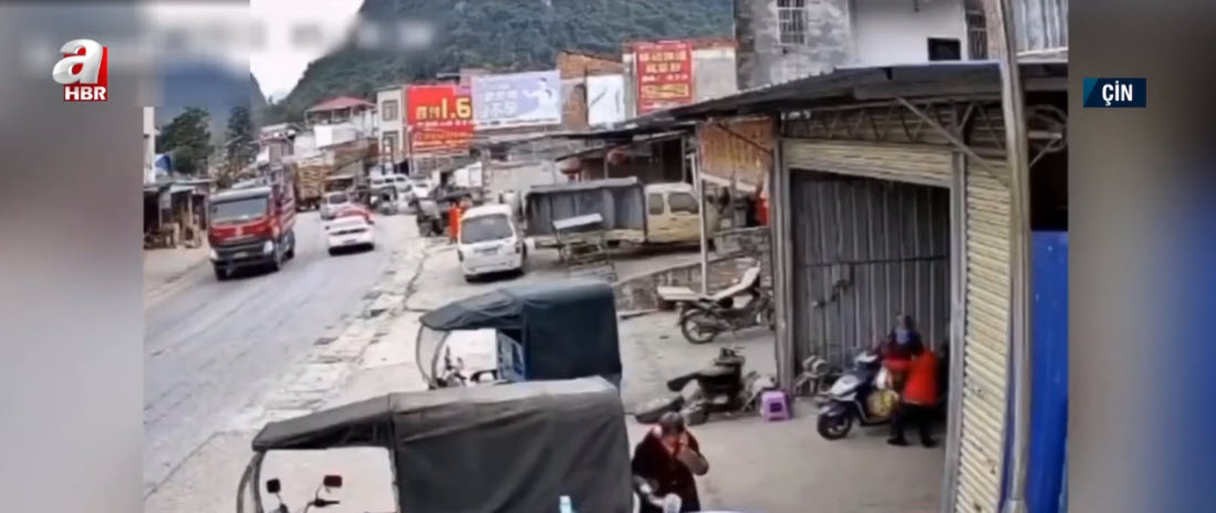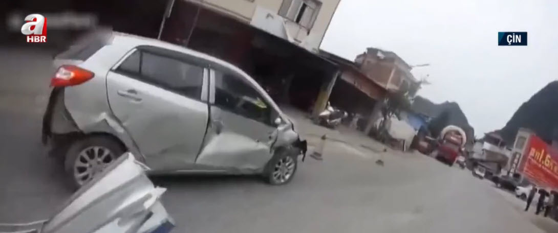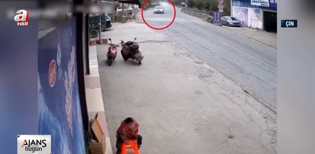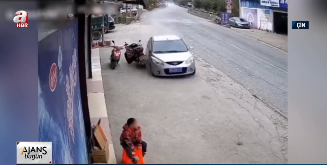 Çin'de direksiyon hakimiyetini kaybeden bir sürücü önce kaldırıma çıktı. Ardından park halindeki bir motosikleti ve bir çocuğu teğet geçen araç çocuğa yaklaşık 10 metre uzaklıktaki başka bir araca çarparak durabildi.