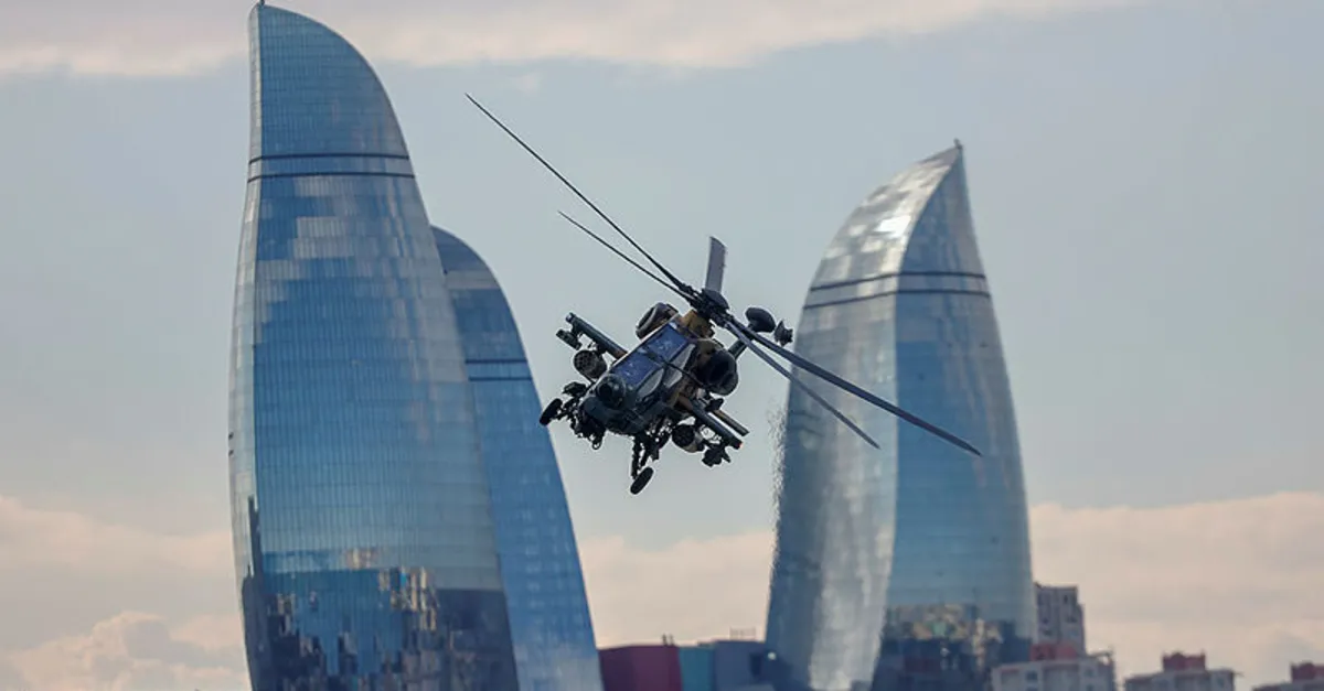 Atak helikopterlerinin Bakü semalarında gerçekleştirdiği uçuş gösterisi büyük ilgi topladı. Çok sayıda kişi, gösteriyi ellerinde Azerbaycan ve Türkiye bayraklarıyla büyük bir heyecanla izledi.